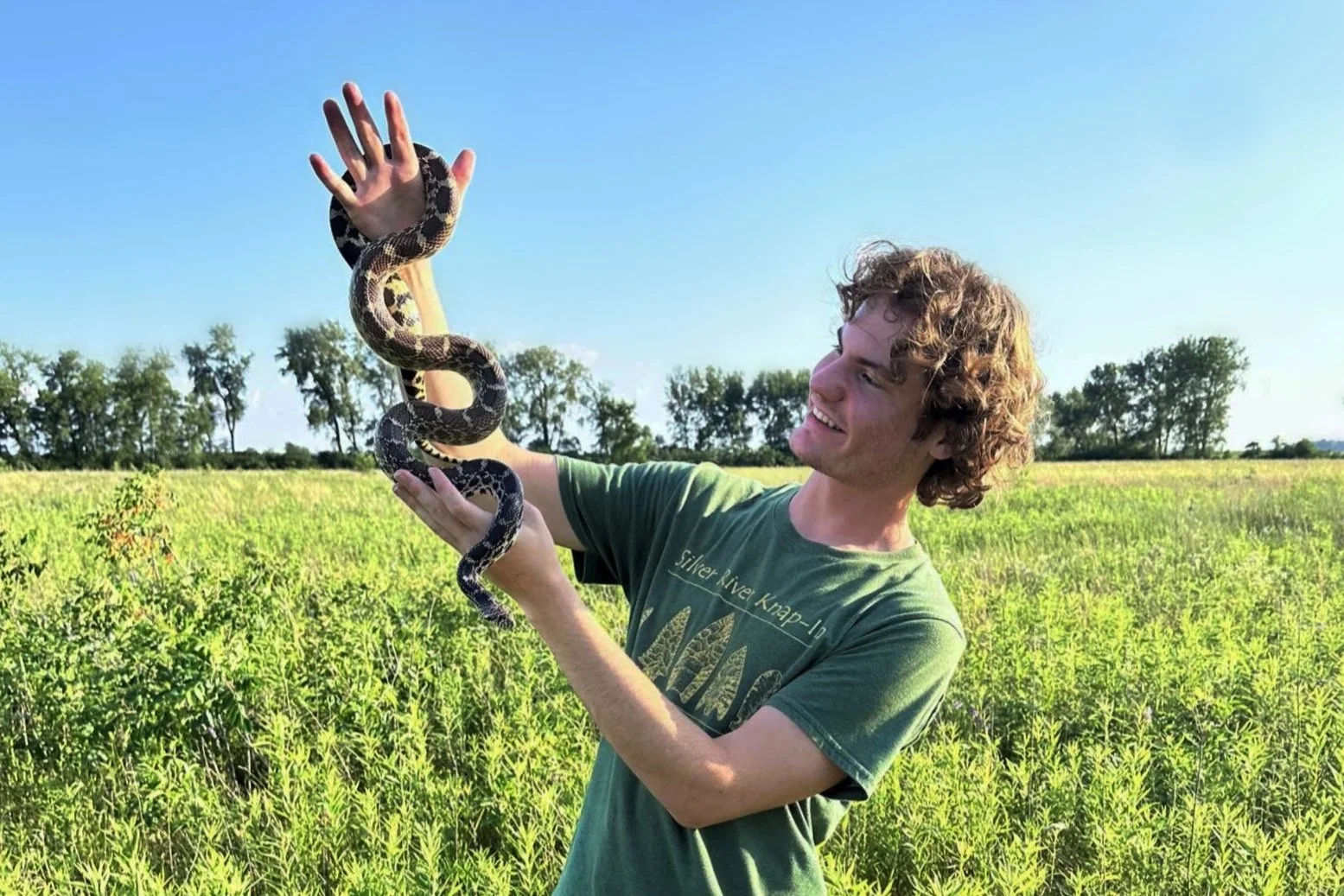 I’m a fourth year WEC major with a focus in mammalogy and animal behavior. This past summer, I did an internship in northern Minnesota at a nonprofit environmental school. My job involved caring for and training the school’s ambassador animals, which included a grey phase red fox and a great horned owl! I also learned how to band songbirds and how to teach middle schoolers about finding and identifying wildlife.
