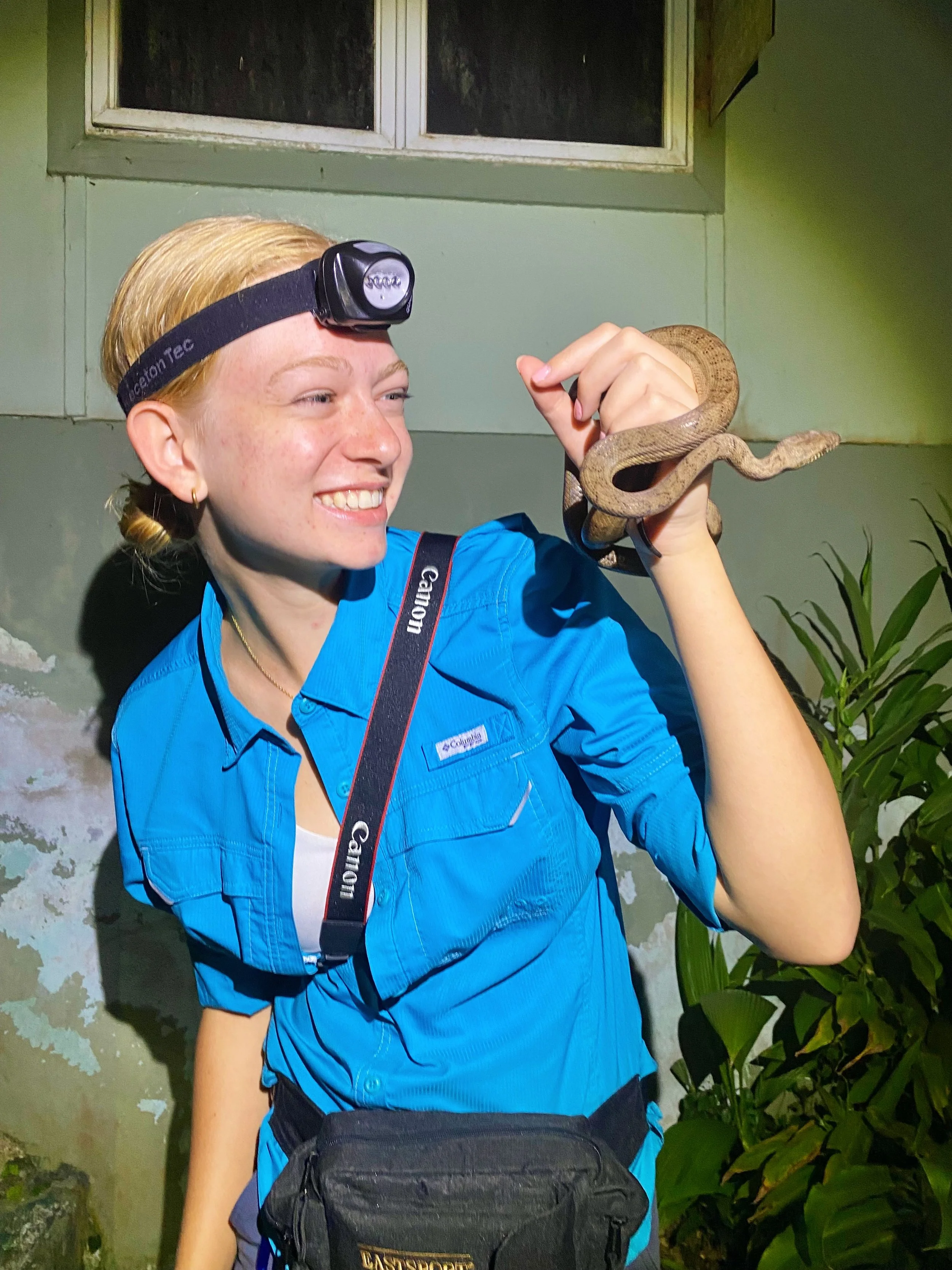 I am a senior Wildlife Ecology and Conservation student with a minor in Entrepreneurship. My biggest interests right now are in herpetology and animal behavior and cognition. This summer I interned at the Reptile Discovery Center, a serpentarium and venom lab in Deland, FL that collects snake venoms for anti-venom production! During the school year I also work in the Quantitative Ecology Lab, studying malaria in Puerto Rican anole species. Though I love reptiles, my all time favorite animal has to be the Giant Pacific Octopus (they are so smart). I spend most of my free time herping, thrifting, and serving at my church. One of my greatest passions is to inspire others to love and care about wildlife, so education and outreach is very important to me, and I am excited to serve in this role!